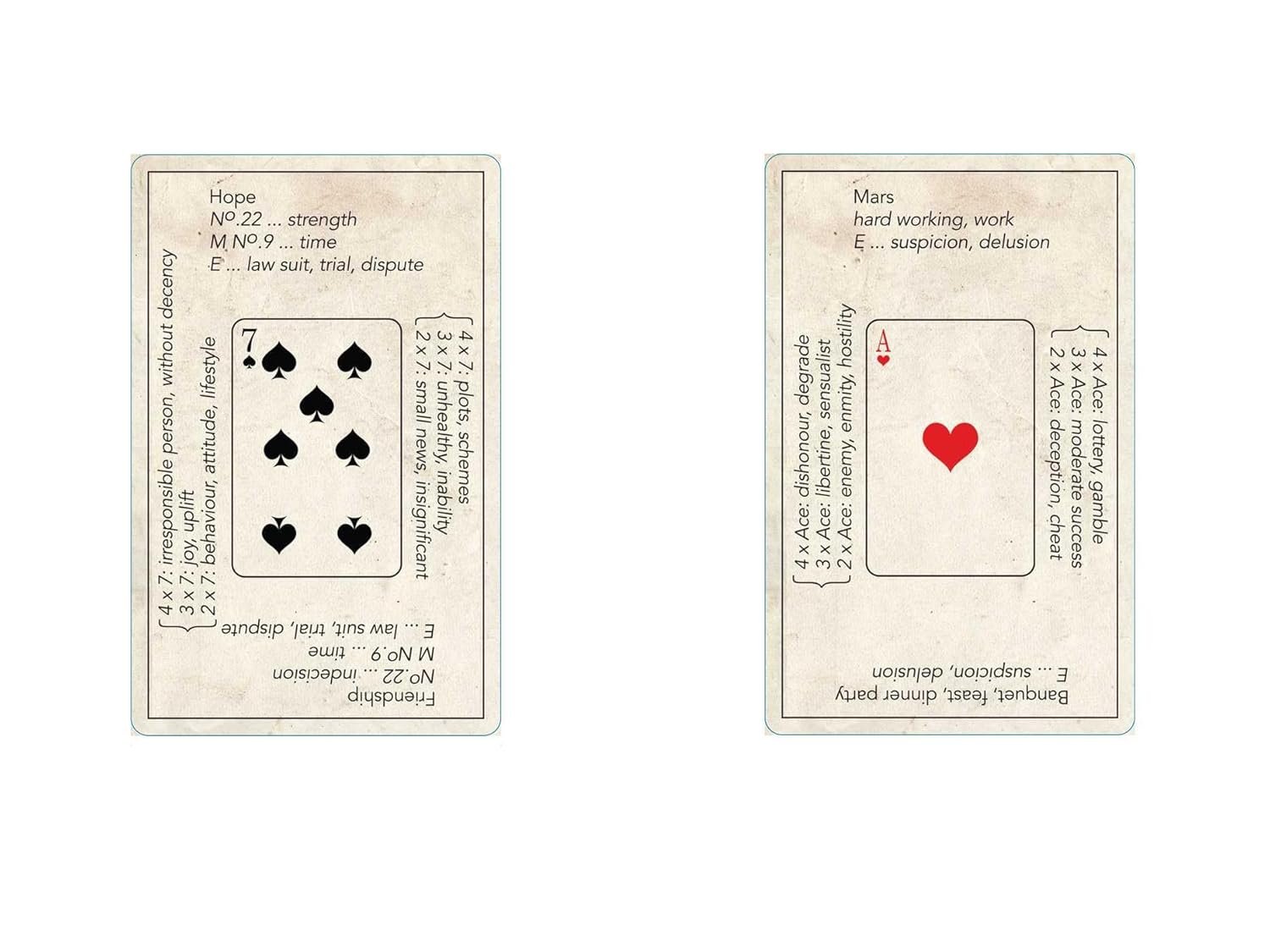 Unlike modern Rider–Waite style decks, the Petit Etteilla follows its own symbolic system, with 52 cards designed specifically for fortune-telling. Each card carries direct meanings and keywords, making it a powerful choice for those looking to explore traditional methods of reading or deepen their understanding of tarot history.